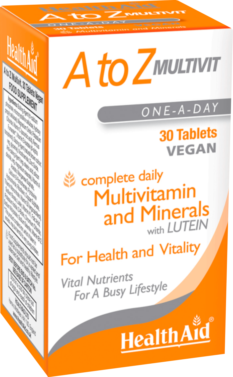 Πλήρης συνδυασμός από 25 θρεπτικά συστατικά, που προσφέρει σε κάθε ηλικία (έφηβοι –ενήλικες – ηλικιωμένοι), όλες τις απαραίτητες βιταμίνες, μέταλλα & ιχνοστοιχεία που χρειάζεται ο οργανισμός σε καθημερινή βάση. Επιπλέον είναι ενισχυμένος με Λουτείνη (antioxidant) για περαιτέρω αντιοξειδωτική προστασία, ιδιαίτερα των ματιών, καθώς και για καταπολέμηση των ελευθέρων ριζών. Τα συστατικά του A to Z multivit βρίσκονται σε ιδανικές αναλογίες (balanced formula) ώστε να μην επιβαρύνει τον οργανισμό, ειδικά το στομάχι και να μην προκαλείται αλληλεπίδραση με παράλληλη λήψη φαρμακευτικής αγωγής. Ο καθημερινός σύμμαχος κάθε ηλικίας, ιδανικό για μακροχρόνια λήψη.
