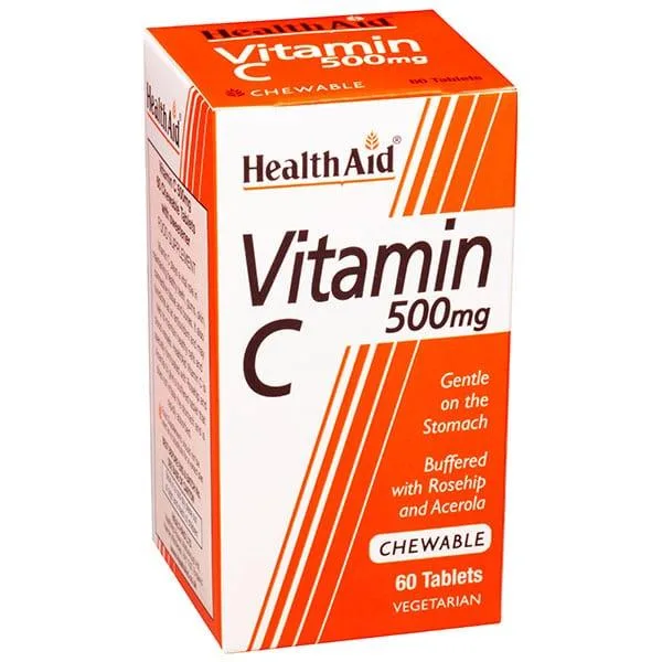 Η Βιταμίνη C είναι απαραίτητη για ένα υγιές ανοσοποιητικό, με αντιοξειδωτικές & αντιφλεγμονώδεις ιδιότητες και είναι αποτελεσματική στη διατήρηση της υγείας των κυττάρων, των αγγείων, των συνδετικών ιστών και των οστών. Προστατεύει την υγεία των δοντιών & ούλων, ιδιαίτερα στη μασώμενη μορφή της και διατηρεί την ελαστικότητα του δέρματος (παραγωγή κολλαγόνου). Απαραίτητη στους καπνιστές (ανεπάρκεια 200%-400% μεγαλύτερη από τους μη καπνιστές). Η Βιταμίνη C της HealthAid είναι εμπλουτισμένη με καρπό αγριοτριανταφυλλιάς & ασερόλα, αποδίδοντας παραπάνω ποσότητες βιταμίνης C και αυξάνοντας παράλληλα το ποσοστό απορρόφησής της από τον οργανισμό. Ως υδατοδιαλυτή βιταμίνη δεν αποθηκεύεται στον οργανισμό και έτσι συνιστάται η καθημερινή λήψη της για την υγιή λειτουργία του. Ιδανική μορφή για όσους δεν μπορούν να καταπιούν ταμπλέτες.