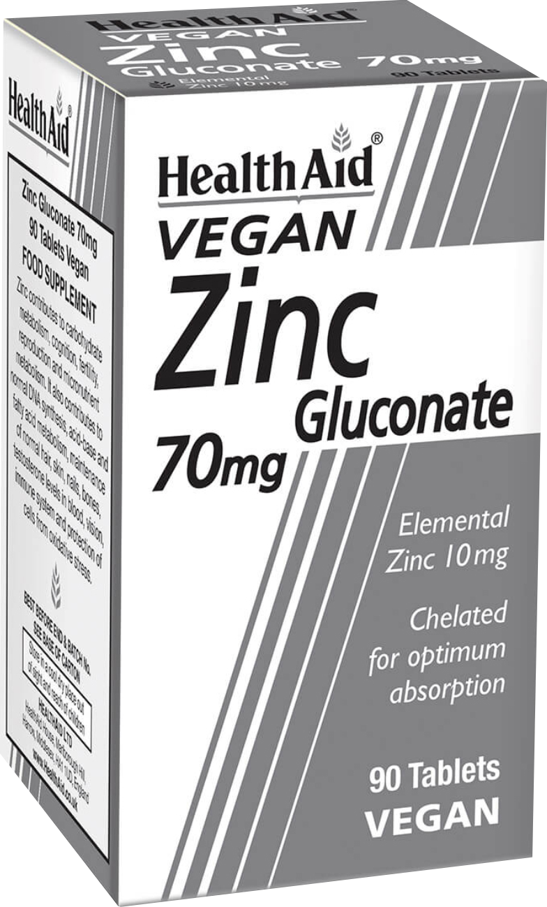 Απαραίτητο ιχνοστοιχείο για τον οργανισμό, καθώς αποτελεί βασικό συστατικό για περισσότερα από 150 ένζυμα. Παίζει πρωτεύοντα ρόλο στη διαδικασία της πρωτεΐνοσύνθεσης (σύνθεση DNA & RNA) και λόγω αυτής της ιδιότητάς του εμφανίζει μεγάλο εύρος ενδείξεων. Συμβάλλει στην επούλωση εσωτερικών και εξωτερικών πληγών, στην ενίσχυση της γονιμότητας, στην ομαλή ανάπτυξη, στη διατήρηση της υγείας της όρασης & του προστάτη και στην παραγωγή κολλαγόνου. Συμμετέχει στην τόνωση του ανοσοποιητικού ως συμπαράγοντας της ορμόνης θυμουλίνης για την παραγωγή Τ-λεμφοκυττάρων. Επειδή μειώνει την απορρόφηση χαλκού από τον οργανισμό, συνιστάται η λήψη του από άτομα που πάσχουν από τη νόσο Wilson (υπερσυγκέντρωση χαλκού). Το Zinc Gluconate της HealthAid είναι χηλικοποιημένος ψευδάργυρος για μέγιστη απορρόφηση. Ιδανικό σε περιπτώσεις ολιγοσπερμίας, ακμής, εκφύλισης ωχράς κηλίδας, έλκους, εγκαυμάτων και κοινού κρυολογήματος.